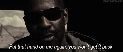 While the film gives us no reason to doubt Eli’s memory, this power move makes me think of the skepticism mounted against the Bible and other ancient religious texts– should we be dubious about claims of inerrancy? Perhaps the word was once true, but how could translation after translation uphold the meaning of the original? How could Eli possibly be this accurate? More importantly, is he taking any liberties himself by slightly altering or “forgetting” parts of the text? Hmmm? It’s notable that while his foe wants The Book to aid in controlling his flock, Eli now gets to control The Book for the rest of time because HE SAYS SO. Could there BE a loftier way to shoot your shot at self preservation?