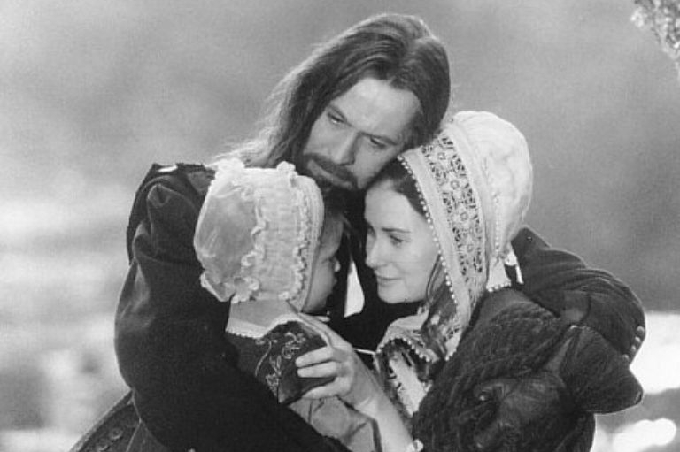 The Scarlet Letter (1995) is a weird, corny movie that suffers from its attempt to modernize the themes of the text on which it is based. It’s one of the worst adaptations of a novel I have ever seen, and diverges so much from Nathaniel Hawthorne’s original work that even the opening credits admit that the film is “freely adapted” from the book. Very, very freely, indeed. In its defense, the film is for the most part watchable, the cinematography and the sets are nice, and some of its departures from the novel are to be expected for the 90’s, like the heightened romance between its leads as explained in a long preamble to the main plot. Even though Demi Moore is miscast as Hester (and her hair sure won’t hold those signature puritan curls), she and Gary Oldman have decent chemistry, but the movie’s obsession with shallow, post-feminist lip-service, awkward-as-hell eroticism, and an offensive subplot involving Native Americans is painful. Eventually, even for viewers who haven’t read Hawthorne’s novel, it falls apart.